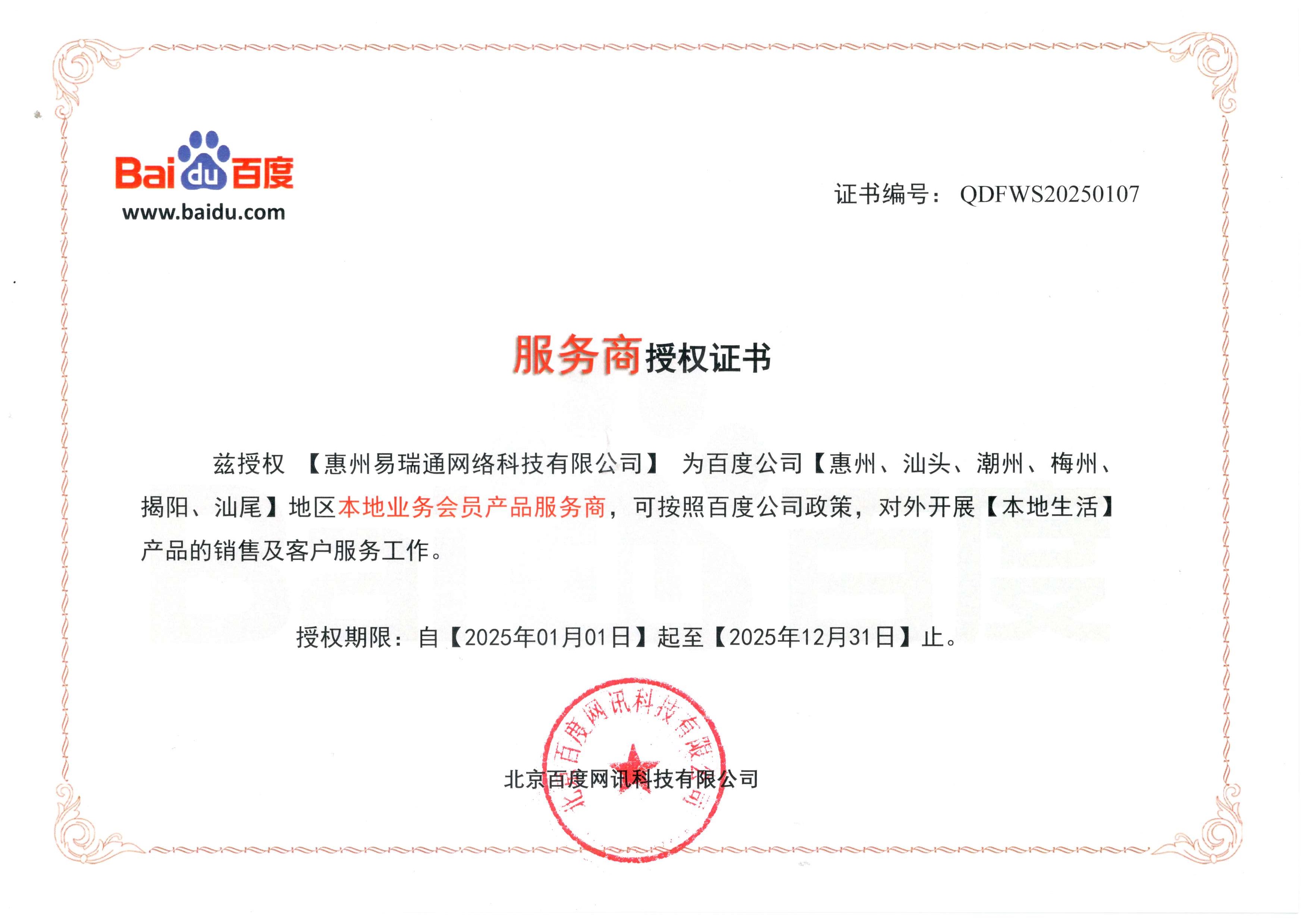 易瑞通作為百度粵東6大城市獨家代理,憑借百度強大的互聯網資源、AI技術與大數據應用能力,為全行業的產品推廣與品牌形象打造需求進行深度匹配,變革企業傳統的營銷思路與渠道拓展,加速企業在供應鏈上下游的銜接,通過搜索大數據指導企業經營生產,并借助移動互聯網為契機,搭建了智能營銷生態服務體系,以品牌營銷、效果營銷、商業模式創新指導等方式與用戶共同成長。