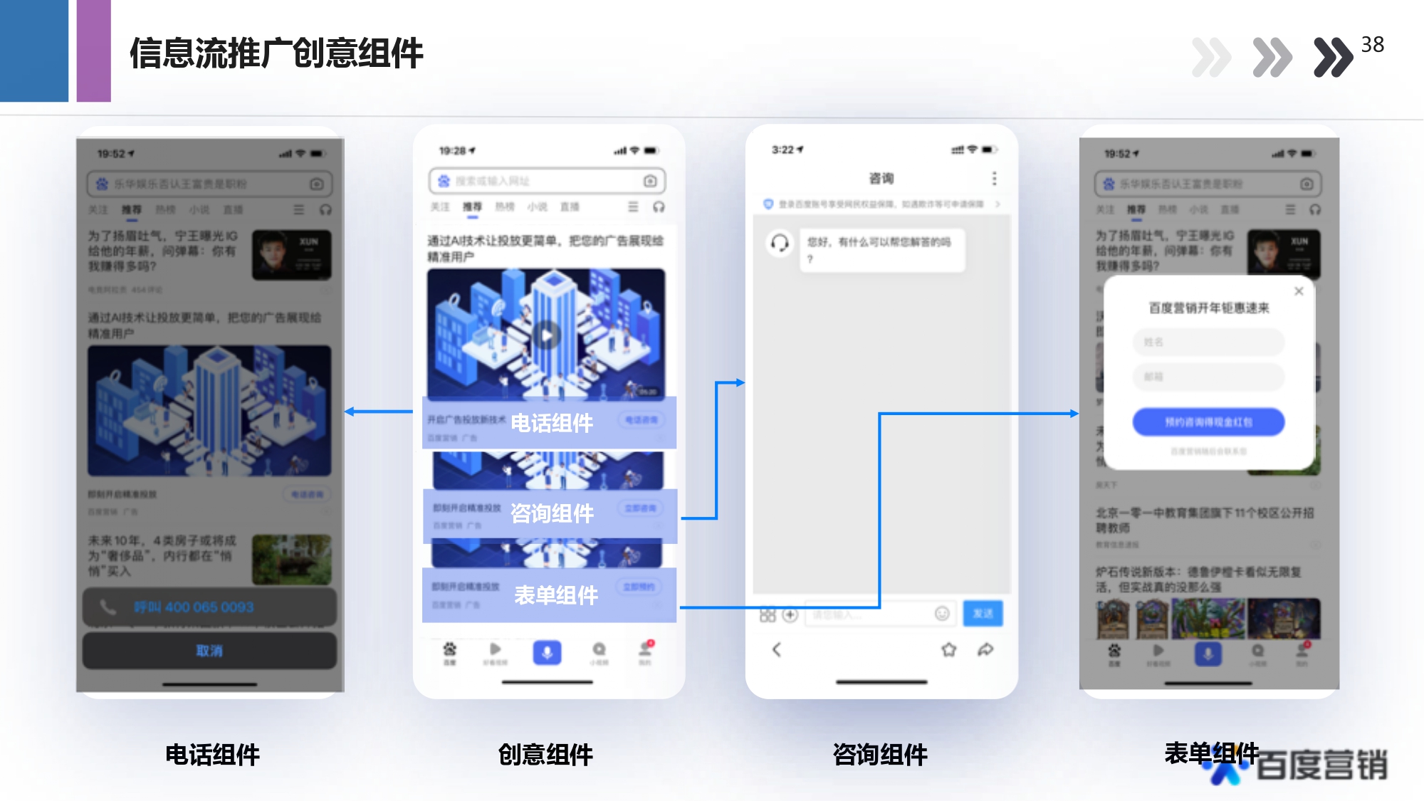 信息信息流廣告是在百度APP、貼吧等百度資訊流中穿插的原生廣告,通過“搜+推”雙引擎,將您的推廣信息自然融入在各類資訊、信息中,易傳播、易操作。